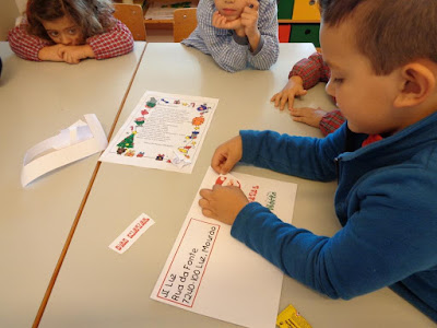 Escrevemos tudo numa carta com ilustrações de Natal, que depois colorimos, e fomos colocá-la na caixa do correio.