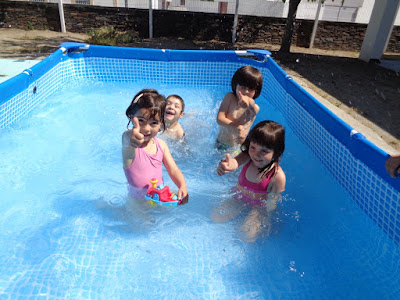 Entre mergulhos e salpicos ainda houve tempo para ler uns livrinhos, enquanto esperamos pela nossa vez de desfrutar a água fresquinha.