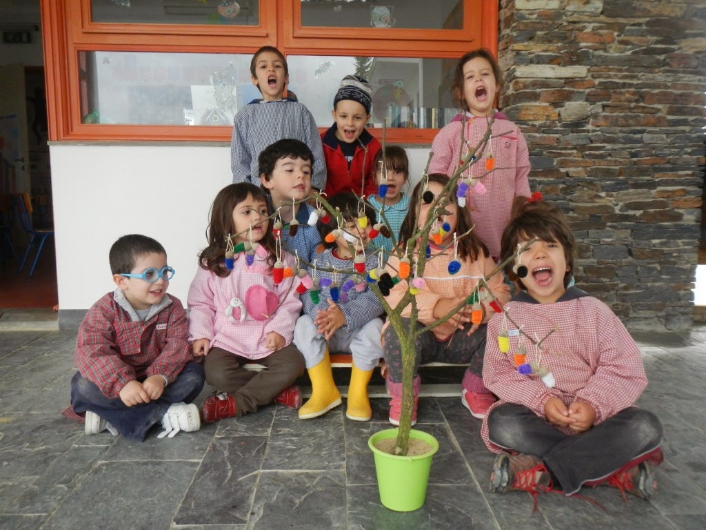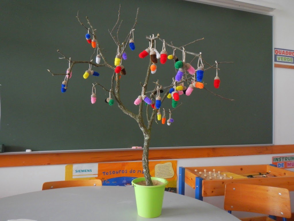 Construímos então a nossa árvore de outono com vários tipos de folhas e com as 5 cores que descobrimos.