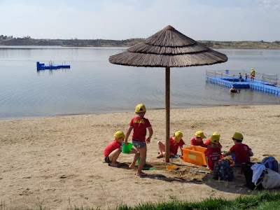 Dia 20 - "Adeus primavera" - Fomos à praia fluvial de Mourão: explorámos e brincámos com a areia e com a água.