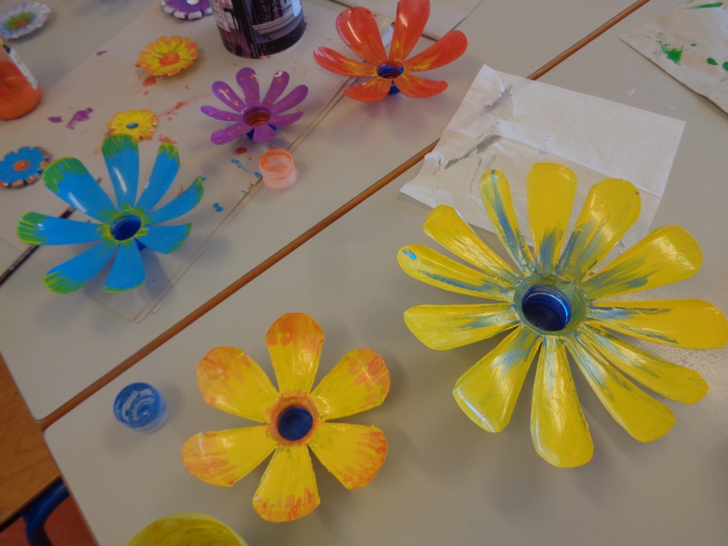 Cores, formas, cheiros - flores. Fomos observá-las no jardim e espaço exterior, e para a nossa sala, trouxemos inspiração e criámos uma escultura de homenagem à primavera com materiais recicláveis.